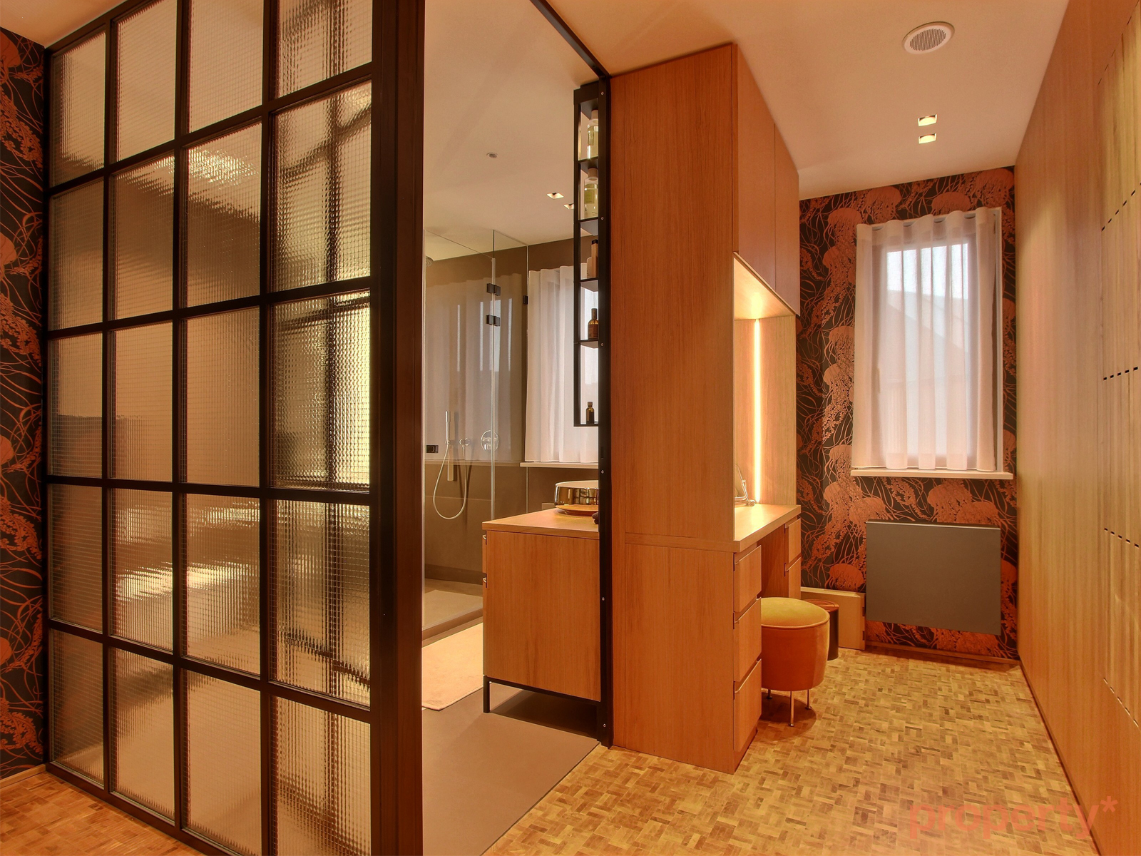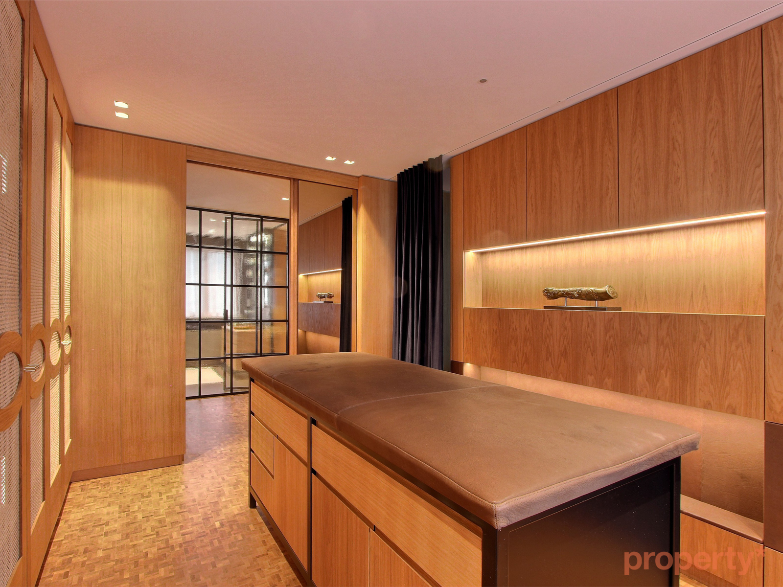 Le deuxième étage est actuellement consacré au bien-être avec une suite parentale munie d'une salle de douche avec wc japonais et d'un grand dressing avec présentoirs et table de massage centrale. Cette surface sera complétée par des combles aménagés au troisième étage en salon privé.